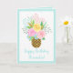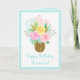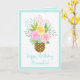 Ananas med krona av en vacker bukett av ro och löv. Rosa, koral, gult, blått, grönt, turkos, brun. Modern, färsk, glatt, söt. Färgkonfetti, turkos gräns. Grattis på födelsedagen och eget namn i trendigets handskrivna teckensnitt. Anpassningsbarnas önskan och avsändarens namn på insidan.