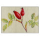 Perfekt skärbräde för att skära upp frukt, med en vattenfärgad bra av en ro-höft som målats av Sarah Trett. www.sarahtrett.com