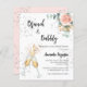En modern, snyggt och glamorös inbjudan till en Bubly brunch-Möhippa. En vit bakgrund med bubblor, ett par blommor, glasögon, en blomma från ro guld och eukalyptus greenery. Namn är skrivet med ett modernt handskript i stil. Anpassa och lägg till information om party. 1 lakan = 1 inbjudan tryckt kant till kant.