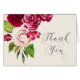 En skarp, fetstilt blommigt av ro i burgnyans och grädde är brännpunkten för många av biet i denna svit i bröllop, som också innehåller elegant text och moderna designlayouter. Det matchande "Tack"-kortet som visas här innehåller allt det ovanstående och en vacker abstrakt med vattenfärg på insida i rik burgundy och plommon. Lägg till namn- och bröllop-datum för bruden och trimningen med hjälp av den angivna mallen. Sök i ID584 om du vill se matchande produkter och andra alternativ för färg för den här designen.