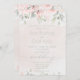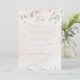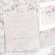 rosa ros-bröllopsinbjudan med en vattenfärgad mjuk blommigt för rosa och silver eucalyptus grey mot en vattenfärg tvättar bakgrund.