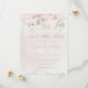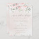En mjuk och enkel rosa och silver gienery bröllopsinbjudan Spara datumkortet. En delikat vattenfärgsmålning av rosa blommigtar och silver eucalyptus grey mot en rosa vattenfärg tvättar med en dekoration med namnet Spara datum.