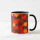 Färgat rött och orange ro med svart löv på en fetstilt röd bakgrund, sömlös mönster - med gotiska vibes.