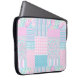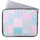En Neoprene-Sleeve med chic för att skydda din bärbara dator (upp till 15 tum), med ett Faux Patchwork-mönster av klart rosa ros på en himlar blå bakgrund, prickad med små vita fjärilar, tämd med matchande Check Ginghams, Polka dots och Stripe Mönster. En del av samlingen "sommardagar" i Posh & Painterly.