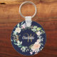 Söt, engradig nyckelkedja, med ett vackert skript namn med en komplimenterande guld-inledning, som är inramad av en ömtålig vattenfärgsgarland i blommigt ro på en marin blå bakgrund. Anpassa för att skapa en speciell keepsaki-gåva till skatt! Designad av Thisisnotme©