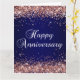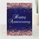 Lodrät formaterar schyst faux glatt ro guld glitter överst och grund kant över en mörk blått och marin digitalkonsbakgrund. Du kan ändra textbilden färg i Lycklig på årsdagen. Glitter är digitalgrafik som skrivs ut som ett foto.