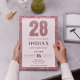 Denna 28:e födelsedagsinbjudan till guld har faux ro guld nummer 28, det är snyggt och elegant, Sparkly och chic, Glam ro, rosa överraskning för en milstolpe på födelsedagen.