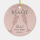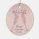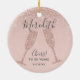 Vår unika 50:e födelsedag runt keramisk prydnadsgåva har en feminin rosa glitter-bakgrund med ro guld champagne-redo för att fylla födelsedagsäln, vars namn är skriven på prydnaden i helgdag manustypografi. Ytterligare exempeltext lyder: "Skål! Till 50 år" följt av födelsedatum (som du kan ta bort om du inte känner till födelsedatumet eller födelseåret). All text kan enkelt revideras med hjälp av rullgardinsmenyn för anpassning.