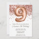 Ro 9:e eleganten Födelsedagsfest inbjudan och ro guld i dag 9:e födelsedagsfest inbjudan för en 9-årig flicka med moderna skrivmanschettballonger och baljballonger för roligt.