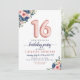 Blommigt Blått Rosa Ballon Sweet 16:e födelsedagsinbjudan Utformningen har vattenfärgsblåa och blommor av rosa med ro guld-ballongaccent. Om du vill ändra numrerade ballonger kan du skicka e-post till mig på panggadesigns@gmail.com