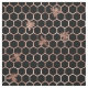Honungsbin av typen Metallic ro guld och honungskaka täcker över en svart bakgrund.