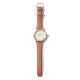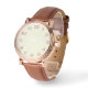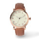 Manar Guld Vintage Watch med brunt läderband, med fet arabisk numrering i ro guld (#B76E79) på en benvit (#F5F5DC) bakgrund. Det här anpassadet kan vara en personlig med ditt monogram, namn eller din bild, och skapar det som ett klassiskt och sofistikerat val för arbets- eller formella evenemang.