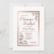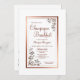 En frukostinbjudan till en möhippa av champagne av elegant guld/koppar på gränsen mellan blommigt och blommigt med varma portionsmönster i guld i diagonalhörnen.