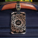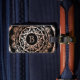 Matchande bagage är tillgängligt! En koncentrisk cirkel mönster i elegant blommigt mandala i trendig ro guld på svart runt ditt monogram. Observera att mönstret är digitalt tryckt och att resetaggen inte innehåller den egentliga folie av ro guld. De spektakulära mongrammade bagagemärken är tryckta på båda sidor och finns tillgängliga i längdmått på 2 tum och 3,5 tum i bredd. Bagagemärkena är fästade vid ett läderband och kan ha ditt namn och adress inpräglat på baksidan.