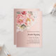 En elegant 50-årsinbjudan till kvinnor. En guldgradient rosa bakgrund som dekorerats med rosa och rosa guld, rosor och spetsar. Anpassa och lägg till information om namn och party.