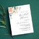 En vit chic bakgrund. Dekorerad med en blommigt för guld och rosa, blomma från ro och grönt, vattenfärgad eukalyptus löv, sprig, grönsak och faux ro sprig. Anpassa och lägg till bridens namn för att vara och närmare party. Bakåt: ro guld, färg. 1 lakan = 1 inbjudan tryckt kant till kant.