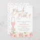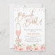 Denna brunch och bubblande inbjudningskort för möhippan har två blommigtar vattenfärgsarrangemang i nyans av rosa och ett glas av hög elegant i en faux ro guld struktur och rosa färgad vattenfärg. Rubriken finns också i faux ro guld och är en del av bilden. Underbar för någon som tittar för en brunschinbjudan till möhippan ro guld.