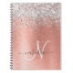 Ro Guld Brushed Metall Glitter Monogram Namn Anteckningsbok