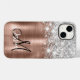 Cute söt Ro Brushed metall silver faux glitter mongram I-Phone-väskan har en modern glitter lyx Chic shimmer guld ro guld metall borstad silver glitter. Vackert, modernt och coola skydd för flickor som har klassisk sparsam design. Visa upp din personliga stil, se modern ut, trendig och känn snyggt med en unik design på ett mobilenhetstillbehör eller anpassa den till en annan produkt du vill ha. Lägg till ditt namn med en coola och en modern kalligrafi. Det gör perfektens gåva till en söt 16-årsdag, bröllop, möhippa, årsdagar, babyduschar eller möhippor, valentines day eller som en gåva i allmänhet.