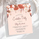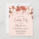 Den här inbjudan till festlig studentfest innehåller en ro guld och en burgundisk ballonggarland över streaming rosett band och konetti. Ord "Studenten" och student namn står i ett modernt burgundsskript. Lägg till informationen om party i ett svart sans serif-teckensnitt på rosa. Ballongbågarna och konfektyrerna upprepas på baksidan av kortet.