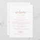 Bröllop välkomnar brev i kalligrafin i ro guld är perfekt för ett nordligt bröllop. Den enkla utformningen och utformningen av eleganten har manusattypografin klassisk och finare i ro guld och vit. Anpassa fronten med ett välkomstmeddelande till dina gäster och till namn. Anpassa baksidan med schemat för händelser och annan användbar information.