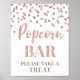 Popcorn pub-skylt för babydusch, möhippa, födelsedagsfest eller bröllop i en konetti mönster i ro guld.