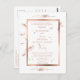 En enkel, men ändå elegant utformning av dandelionfluff flytande runt ram. Allt är gjort i ro guld som verkligen står mot en vit bakgrund! En inbjudan till fullständigt anpassade. På baksidan står det: "Vi var och en ville och tillsammans blev de sanna." En romantisk och charmig väg till ge alla detaljerna på den viktigaste dagen i ditt liv!