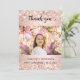 Ett första kommunalt Tack-fotokort för en tjej. En övertoningsbakgrund i ro guld, svart text. Dekorerad med rosa CONetti. Anpassa och lägg till ett foto och tackkort.