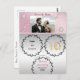 Utformningen har en kombination av ro guld och silver. Den präglade silver-blommigten innehåller information som ni vill förmedla vid den tidpunkten. Ett unikt guld- och glitter-nummer och en rad vågigt vita pärlor bakom anpassningsbarna foto lägger till chic till den slutliga utformningen. Anpassa ditt eget meddelande längst bak på kortet.