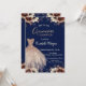 Ro Guld Dress Flowers Navy Blue Quinceañera Inbjudningar