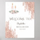 Elegant chic vin smakar med blommor och ro guld glitter droppar på vit bakgrund.