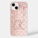 Anpassa och lägg till ditt monogram brev, initialer. Monogrammet initialer som mönster i bakgrunden. En giftig och feminin ro guld-övertoningsbakgrund färg. Dekorerad med rosa och ro guld faux glitter droppar, färgdroppstift. Ro färgad brev.