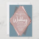 Elegant, chic och modern med en reflexform, utskrift av den geometriska diamantformen ro guld på dammig blått, mauve, rosa och träkol grått diamanturdel, bröllopsinbjudningar. Denna klassiska och sofistikerade utformning är perfekt för det trendig och det snyggt som gifter sig. Anpassa med ditt eget meddelande på framsidan och en anpassad inledande monogram på baksidan. All fotoutskriftsdesign.