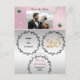 Utformningen har en kombination av ro guld och silver. Den präglade silver-blommigten innehåller information som ni vill förmedla vid den tidpunkten. Ett unikt guld- och glitter-nummer och en rad vågigt vita pärlor bakom anpassningsbarna foto lägger till chic till den slutliga utformningen. Anpassa ditt eget meddelande längst bak på kortet.