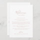 Det enkla minimalistiska brev som bröllop välkomnar i ro är perfekt för ett modernt bröllop. Den enkla utformningen och utformningen av eleganten har manusattypografin klassisk och finare i ro guld. Anpassa fronten med ett välkomstmeddelande till dina gäster och till namn. Anpassa baksidan med schemat för händelser och annan användbar information.