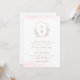 Minimalistisk bröllopsinbjudan för faux guld och rosa, med ditt monogrammade initialer inramat av elegantens vapensköld och handillustrerat botaniskt löv överst, visas dina händelsedetaljer nedan i modernt skript och klassiskt teckensnitt. Enkel och lyx. Underbar för det moderna klassiska bröllop, rent formellt bröllop, elegant botaniskt trädgårdsbröllop. Visa alla matchande delar i samlingen.