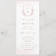 Monogrammad initialer inramad av elegantens vapensköld och handillustrerad botaniskt löv, din händelseinformation i elegantens skript och klassiskt teckensnitt, enkelt och lyxt. Underbara faux ro guld och rosa för modernt klassiskt bröllop, rent formellt bröllop, elegant botaniskt trädgårdsbröllop. Visa alla matchande delar i samlingen.