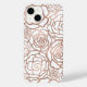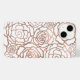 Pressa upp din mobil i en gleaming faux ro guld foil! Telefonfodralet har en blommigt mönster i rosor och kamellias i ro guld på en skarp, vit bakgrund. OBSERVERA: folie är en utskriven bild.