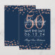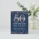 Elegantens "50:e Födelsedagsfest"-design med Ro Guld Faux Glitter Confetti Navy Blue och anpassad namn och detaljtext. Lätt att använda och lätt att anpassa. Ordna i dag!