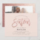 Ro guld ger en giftig rosa glitter gnistra med en modern fotoöverraskning, söt 16-årsinbjudan. Modern minimidesign för trender med skript för elegant av chic. En del av en födelsedagssamling. Perfekt för din glam tonåring. Liggande fotobakare.