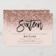 Ro guld ger en giftig rosa glitter gnistra med en modern fotoöverraskning, söt 16-årsinbjudan. Modern minimidesign för trender med skript för elegant av chic. En del av en födelsedagssamling. Perfekt för din glam tonåring. Liggande fotobakare.