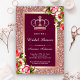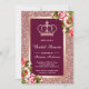 Inbjudan dina gäster med eleganten inbjudningskort för möhippan med en vacker bakgrund för rosa krona på faux glitter och blommigt. Lägg bara till din händelseinformation i den här mallen som är enkel att använda för att göra den till en inbjudan av typen en.