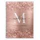 Rosa ros Guld Glitter Gnistra Brushed Metall Girly Script Monogram för anteckningsbok