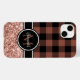 Skapa din egen personlig monogram svart, vit, terra cotta, sienna, beige, rödbrun, och ro guld och buffel pläderade mönster anpassade fodral. Monogrammet och bakgrundsbilden färg valdes från faux glitter digitalteckningen. Prova med ett annat teckensnitt eller färg i systemet till kostym om din stil.