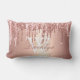 Den moderna, gigantiska rosa ros glitter droppar anpassningsbar personlig namn och mongrammerade lumbalkuddar. Den här designen har gnistror i rosa ros guld glitter vid rosa metall vid utseende med inledande och första namn-textmallen i monogram. Perfekt femininin-gåva till födelsedag, jul, bröllop, Mors dag, söt 16 födelsedag, studenten eller tillfälle. Kontakta mig om du behöver hjälp eller matchande artiklar.