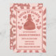 Ett kort för återspelning inspirerade drottning av Hearts och Alice i underlandet till födelsedagsfest inbjudan-design i en palett ro guld med färg med hjärta och diamanter med detaljer om hjärtat och diamanter.