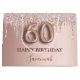 Elegant, klassisk, glamorös och giftig under 60:e födelsedagsfesten. Ro guld och rosa, övertoningsbakgrund. Dekorerad med ro guld, rosa faux glitter droppar, färgdroppstift. Anpassa och lägg till ett namn. Med texten: Grattis på födelsedagen. Namn är skrivet med ett modernt skript för färgaden ro i mörk, skrivet med stil. Nummer 60 skrivs med ett stil-teckensnitt med ballong.