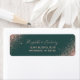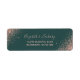 Den här eleganten har en ny returadressetikett för bröllop en ro-guld faux glitter som är diagonalt placerad i två hörn. Med anpassadet kombineras handskrift för blek ro rosa med typsnitt på mörk grönt bakgrund.