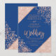 Ro guld glitter konetti chic blue bröllop inbjudningar