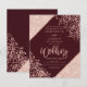 Ro Guld konetti-typografi på anpassadets röda burgundi och faux ro guld-geometriska chic i rand glitter, bröllop för perfekt, lyxig elegant, prisvärd budget bröllop.